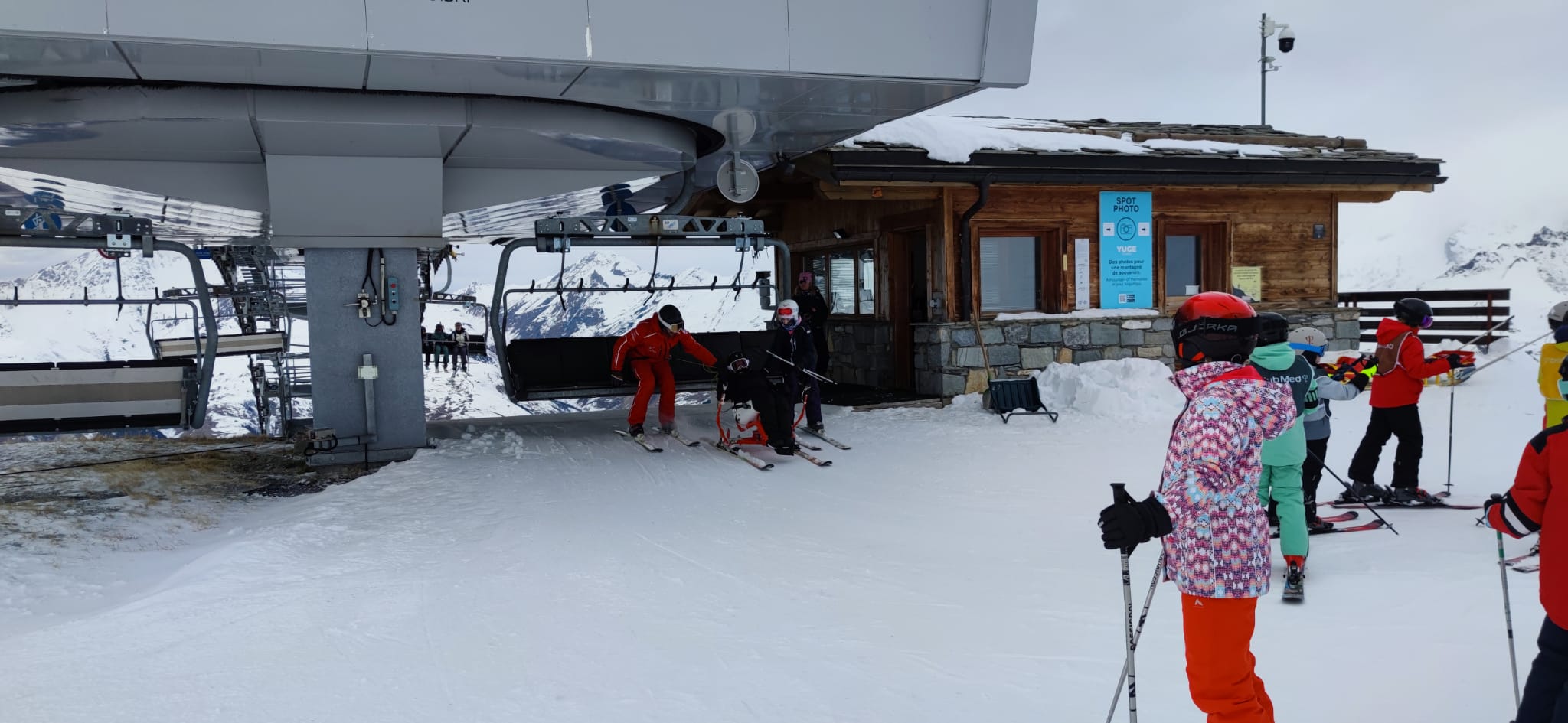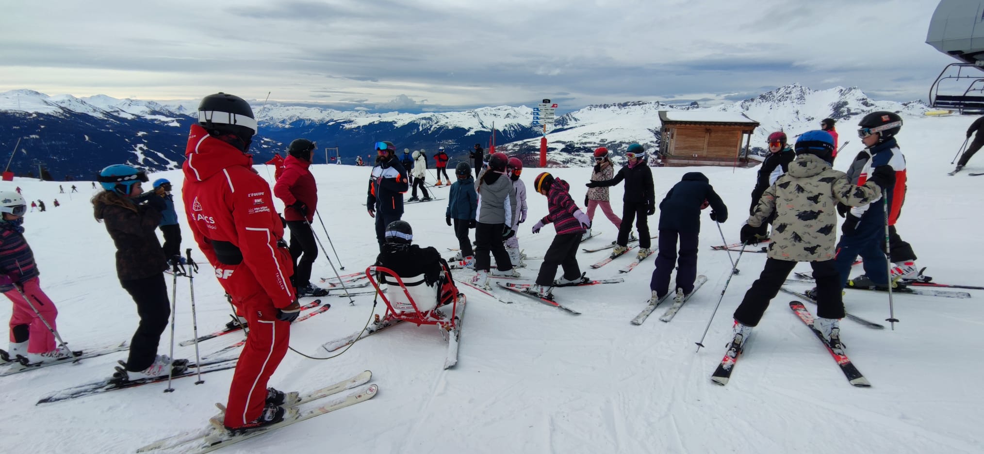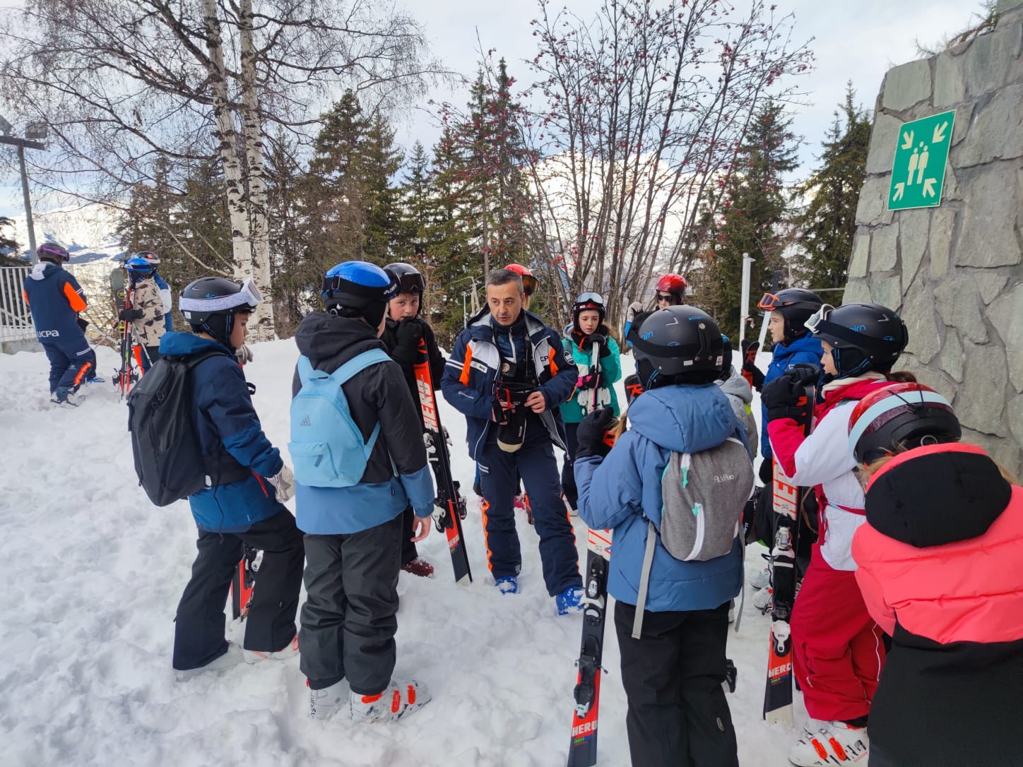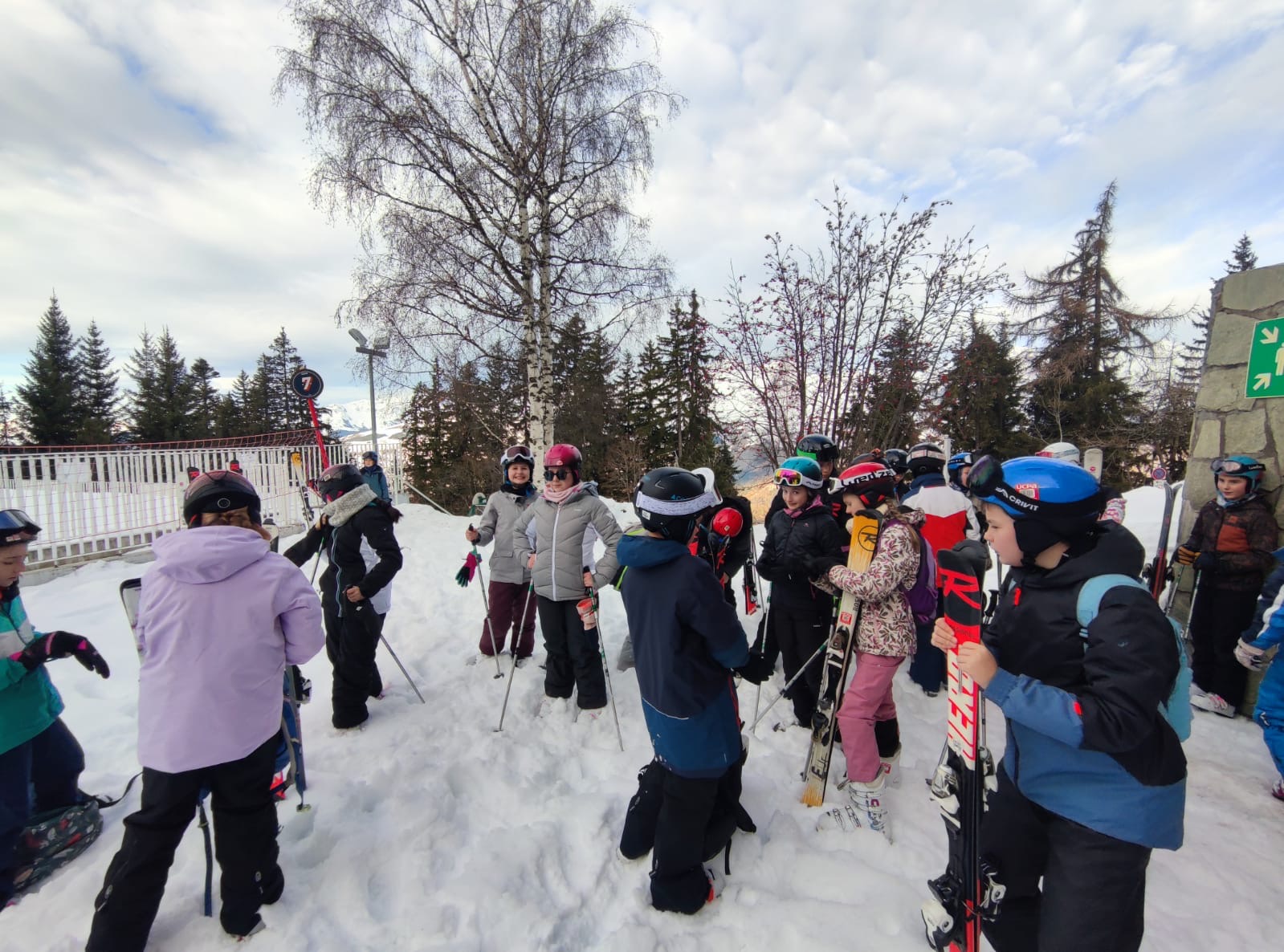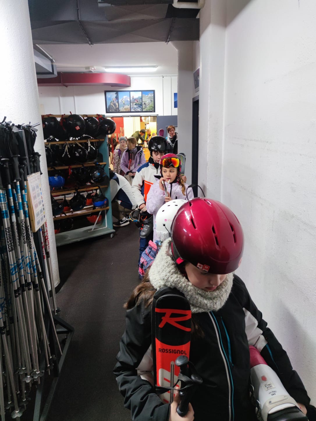 14h : Après une bonne nuit de sommeil et un bon petit déjeuner, les élèves ont pris la direction de la location du matériel et première joie de la glisse sous un beau soleil.