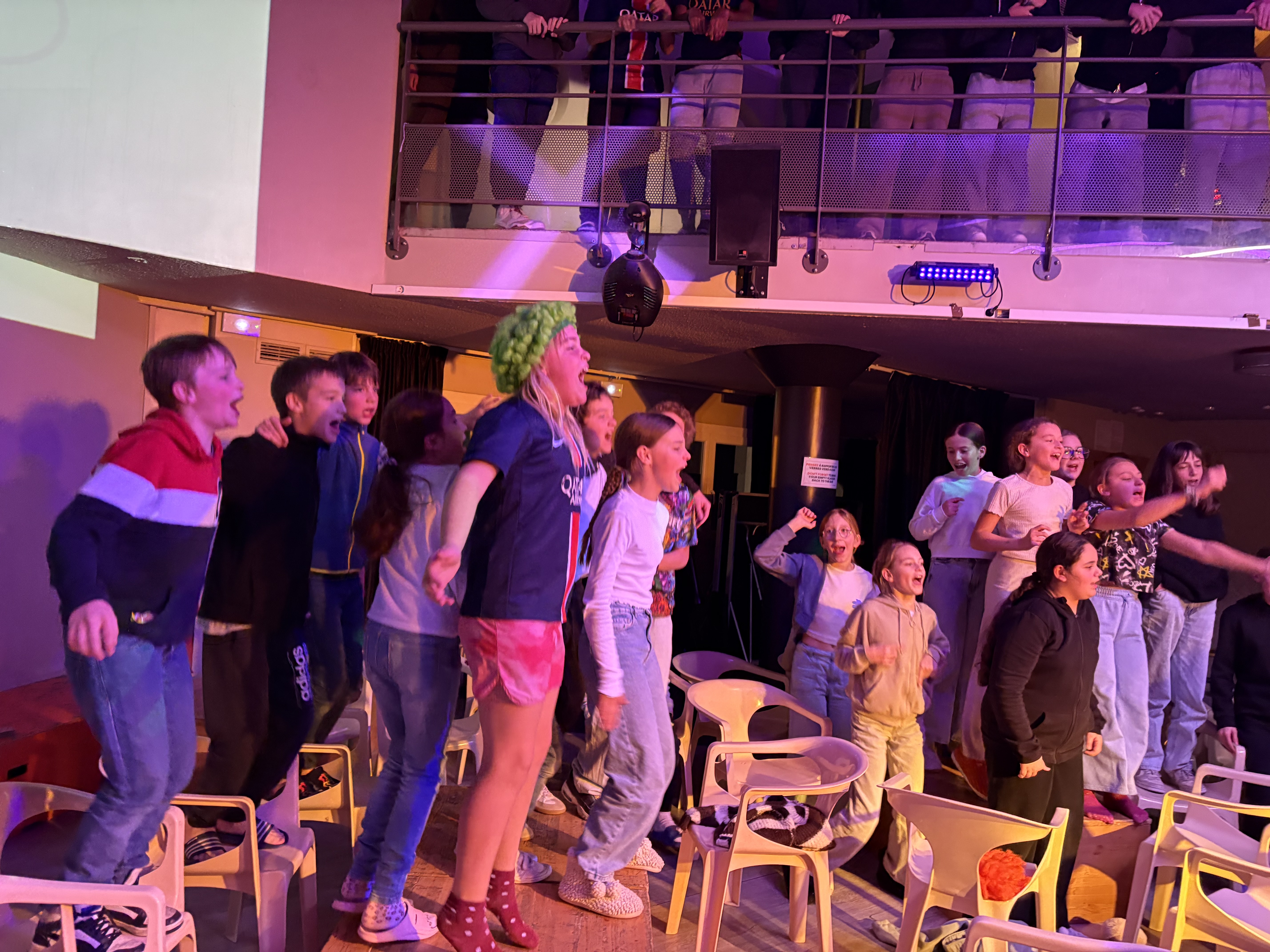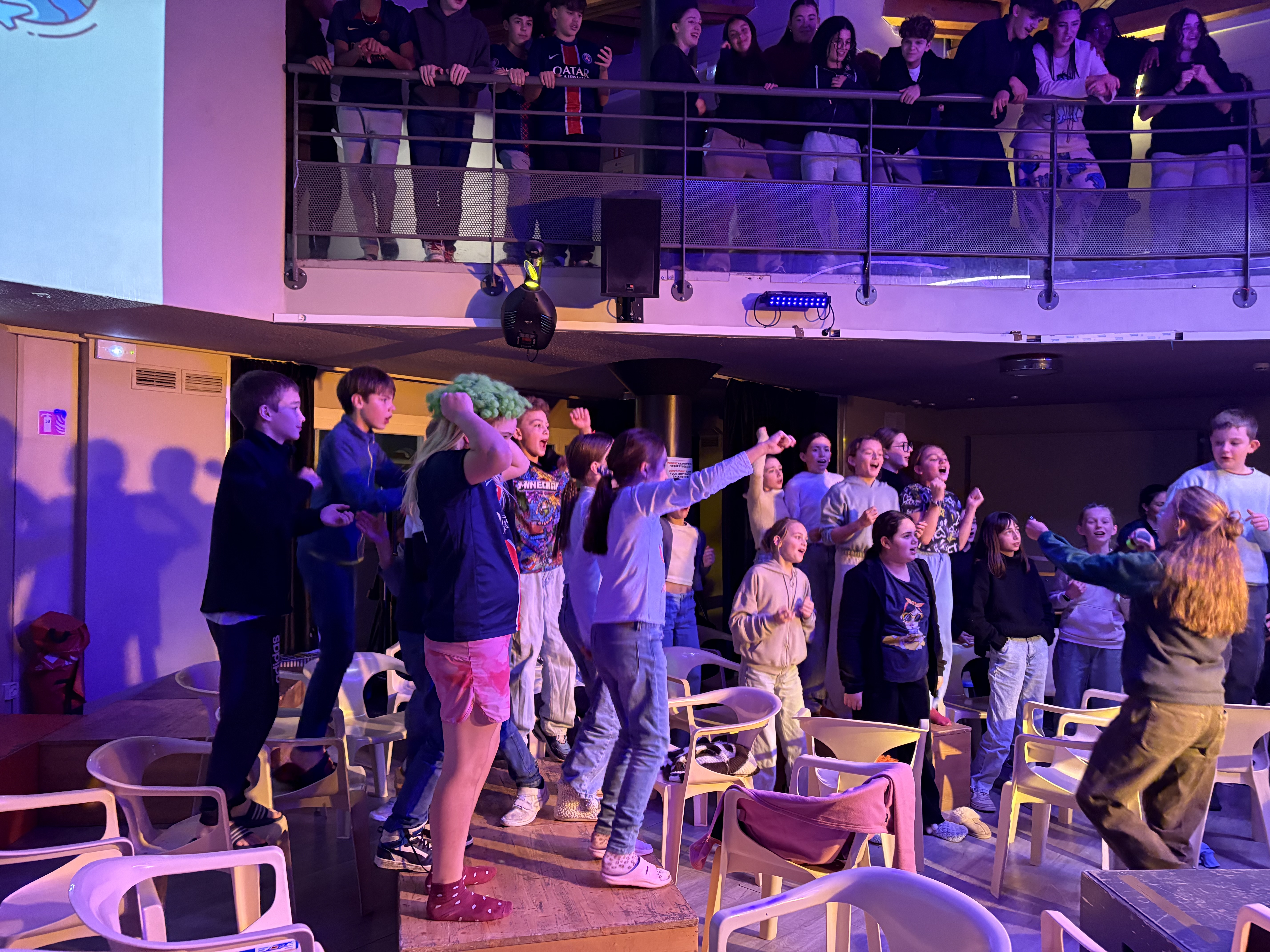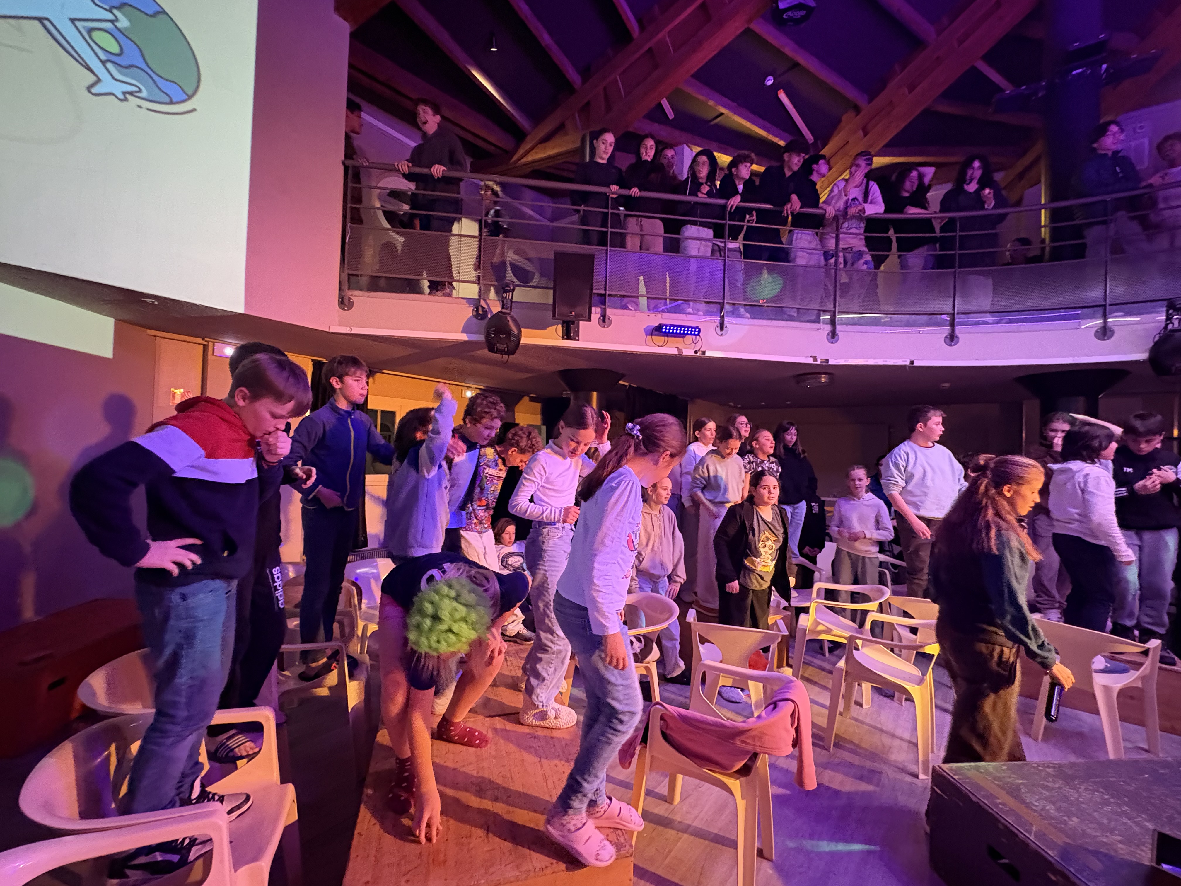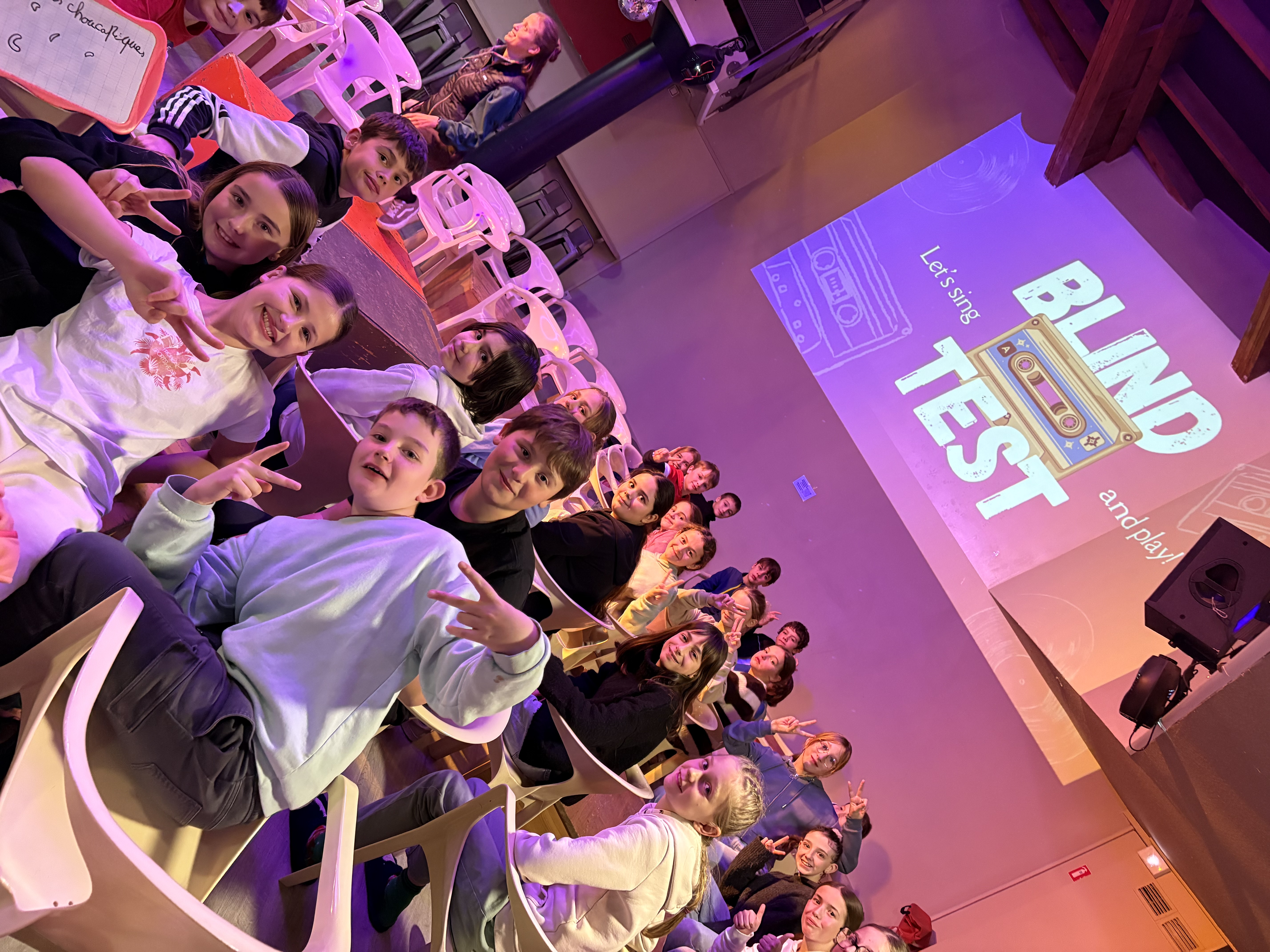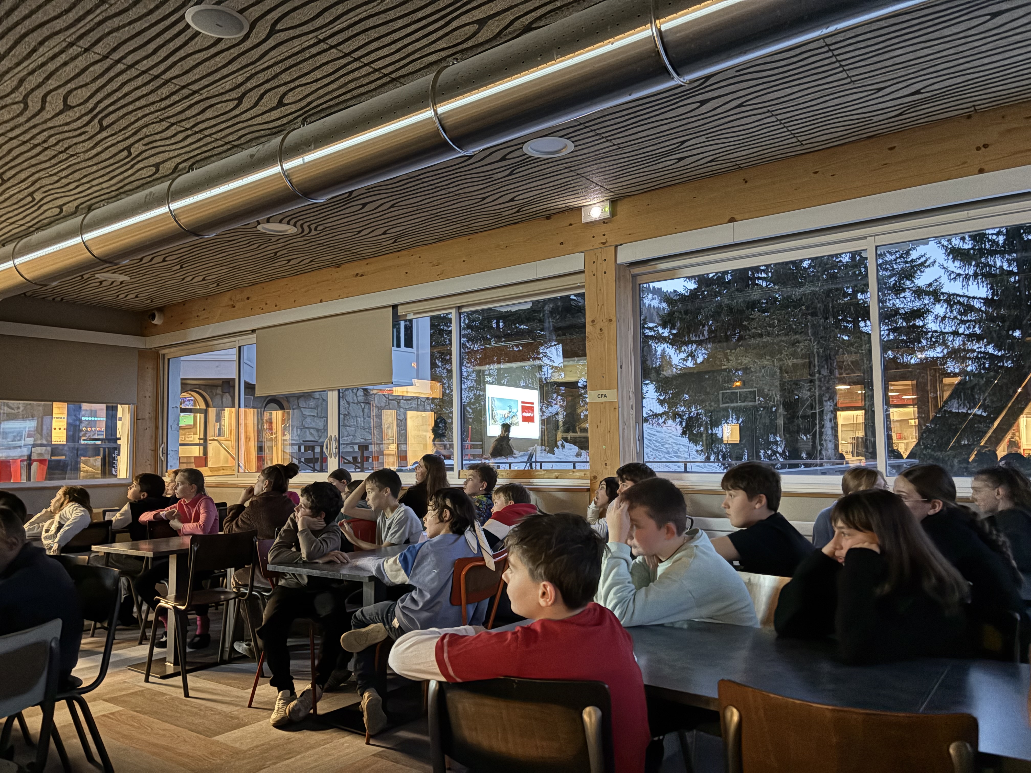 21h30 : Après une bonne journée de ski, les élèves ont retrouvé de l'énergie après le repas pour un topo neige sur les animaux et métiers de la montagne et une soirée blind test