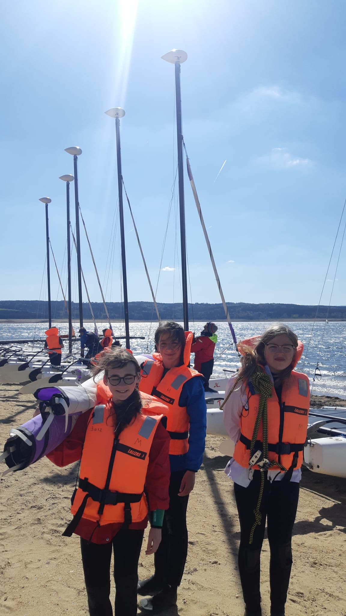 J4: Notre dernière journée s'est déroulée à merveille ! Quelle maîtrise sur les bateaux ! Ce matin nous avions un ballet de voiles avec des élèves qui maîtrisent tous parfaitement leurs trajectoires ( ou presque... un bateau est entré en collision avec un autre mais sans gravité pour les marins qui ont changé de monture et sont repartis aussi vite sur l'eau !)